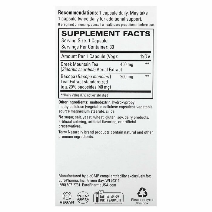 Греческий горный чай GMT23 ™ + бакопа поддерживают сбалансированный химический состав мозга, здоровые нервные системы и оптимальное кровообращение в мозге, что дает вам психологическое превосходство даже в самые напряженные дни ^.