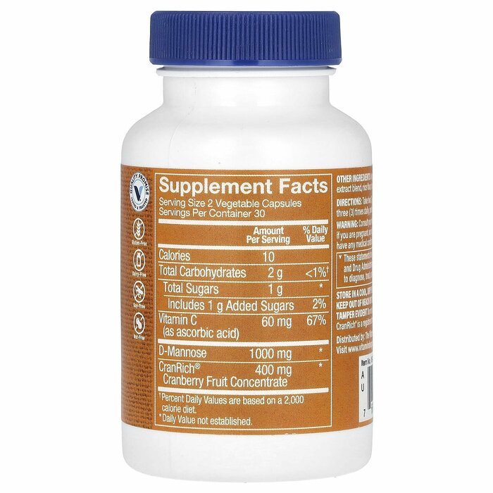 Клюква с D-маннозой от бренда Vitamin Shoppe®, сочетающая 400 мг концентрата клюквы и 1000 мг D-маннозы, является отличной поддержкой для мочевыводящих путей.