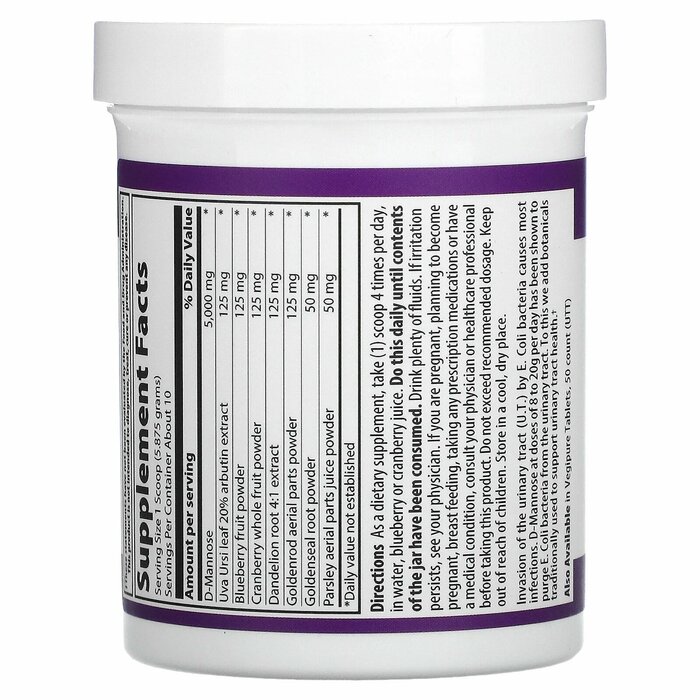 Большинство инфекций вызывает инвазия мочевыводящих путей бактериями кишечной палочки. Доказано, что D-манноза в дозах от 8 до 20 г в день удаляет бактерии кишечной палочки из мочевыводящих путей. Также в это средство мы добавляем растительные ингредиенты, которые традиционно используются для поддержания здоровья мочевыводящих путей.