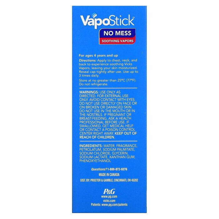 Теперь вы можете наслаждаться легким в использовании средством Vicks Vapors, которое быстро сохнет и остается прозрачным. Ощутите легкое, охлаждающее кожу ощущение от VapoStick, поскольку он плавно скользит по поверхности, сделайте глубокий вдох, чтобы получить необходимое успокаивающее действие. Это так же просто, как 1,2,3 - просто откройте, проведите пальцем и расслабьтесь!