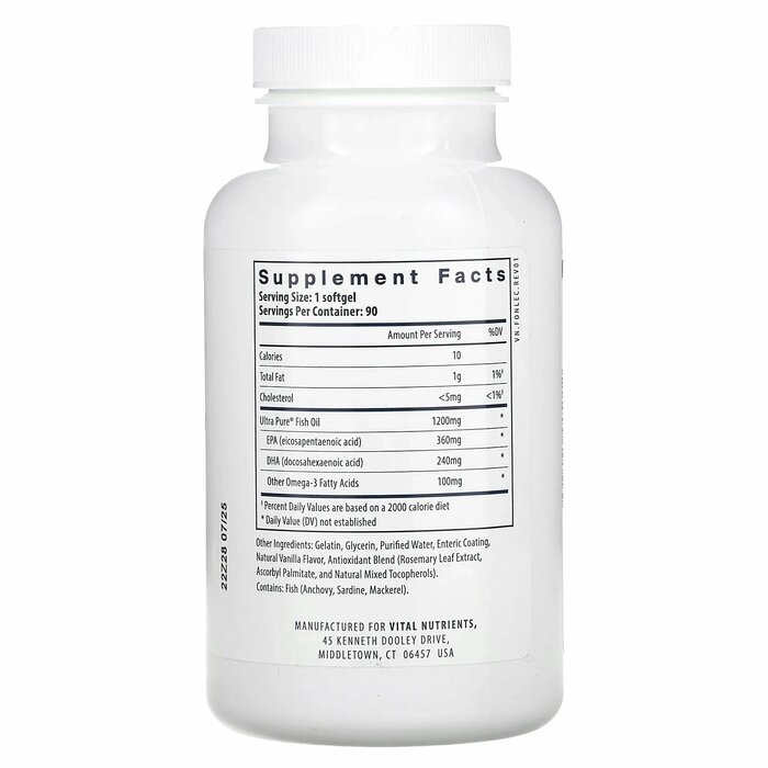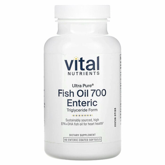 Рыбий жир Ultra Pure® 700 имеет кишечнорастворимую оболочку, чтобы устранить неприятное повторение. Каждая капсула обеспечивает более высокую концентрацию ЭПК и ДГК без лимонного ароматизатора. Рыбий жир обеспечивает защиту и поддержание нормальной работы, текучести и здоровья клеточных мембран. Незаменимые жиры ЭПК и ДГК помогают поддерживать мягкие ткани и соединительную ткань. Рыбий жир помогает улучшить работу хрящей и суставов, снимает легкие изменения настроения и спазмы, связанные с менструальным циклом. Рыбий жир помогает поддерживать уровень акне, который уже находится в пределах нормы. Ультрачистый рыбий жир 700 кишечнорастворимых капсул не содержит лимонного ароматизатора.