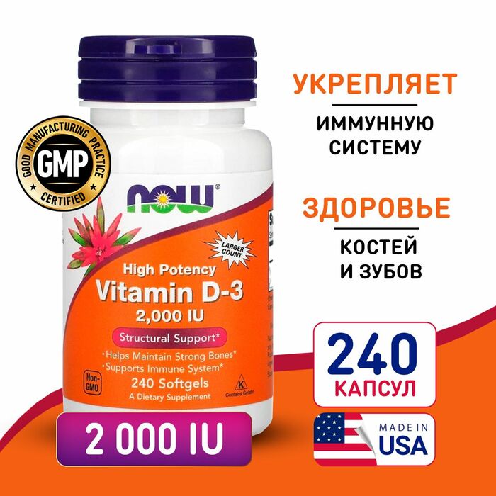 NOW Vitamin D3 поможет вам достичь поставленных целей по укреплению иммунитета, поддержанию здоровья костей и зубов. Покупайте NOW Vitamin D3 на нашем маркетплейсе для поддержания вашего здоровья и благополучия.