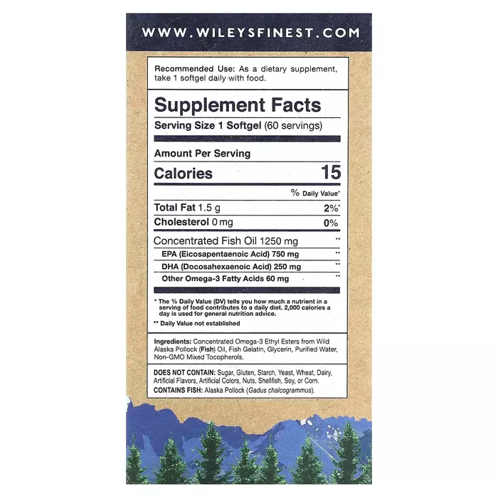 Wiley's Finest Жир диких аляскинских рыб с ЭПК, 60 табл
