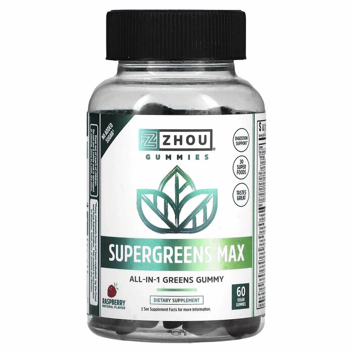 Zhou Nutrition Пищевая добавка Supergreens Max Малина, 60 жевательных мармеладок