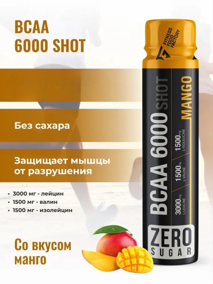 Продукт имеет приятный вкус манго, что делает его идеальным для использования во время тренировок или после них. Жидкие BCAA Fitness Food Factory BCAA 6000 подходят как для профессиональных спортсменов, так и для любителей фитнеса.