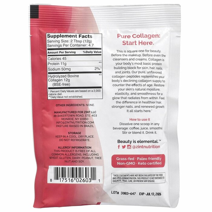 Zint Пептиды коллагена от животных травяного откорма без вкусовых добавок, 56,6 г